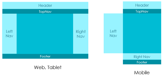 A page is divided automatically into different areas, with the content of all areas except the main area, repeated across all pages of the app. This helps achieve UI consistency throughout the app, easily.
