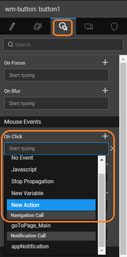 Navigation Action provides navigation capabilities to help in navigating from one page or view to another. By default, for every page added to the app, a navigation action is created with the name goToPage__<pagename>. You can choose to create a new Navigation Action.