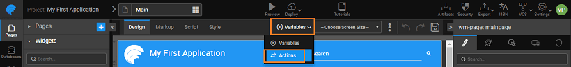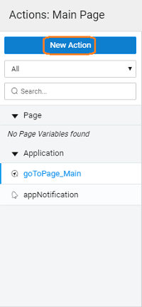 • Select the Action option from Variables on the Workspace Toolbar and click New Action from the Actions dialog.