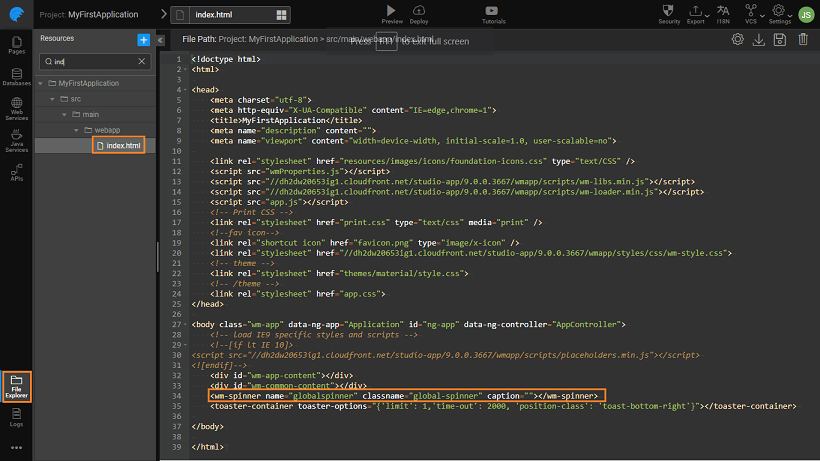 2. Add the icon class property to the "wm-spinner" tag.