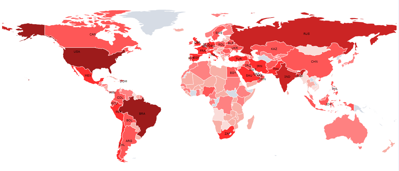 Run the app, you can see the countries color-coded, along with the labels and bubbles.