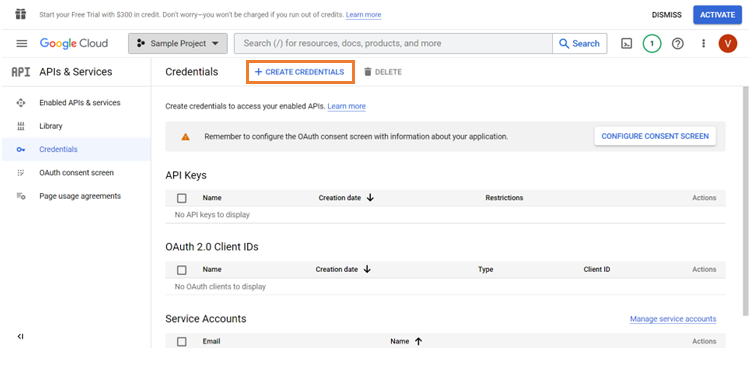 - Set up user account in the Google Console. This is to create an OAuth application to fetch the Client ID and Client Secret.