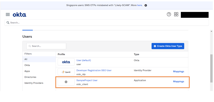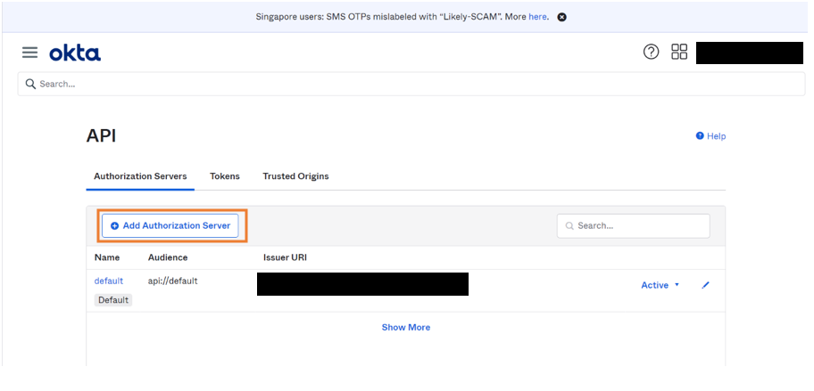 1. Go to Okta API Scopes and click Grant to include it as scope.