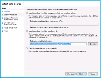 6. Select the metadata.xml file from the WaveMaker app as mentioned earlier in the prerequisites section (ignore any warning messages). adfs_5 adfs_6