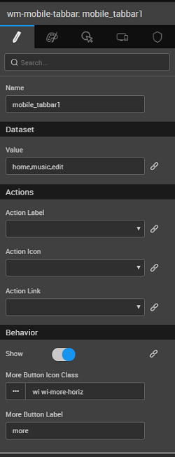 Action LinkLink for tabbar items to be picked from the fields of the Dataset Value mentioned above or bound to a variable.