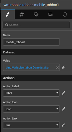 Action LinkLink for tabbar items to be picked from the fields of the Dataset Value mentioned above or bound to a variable.