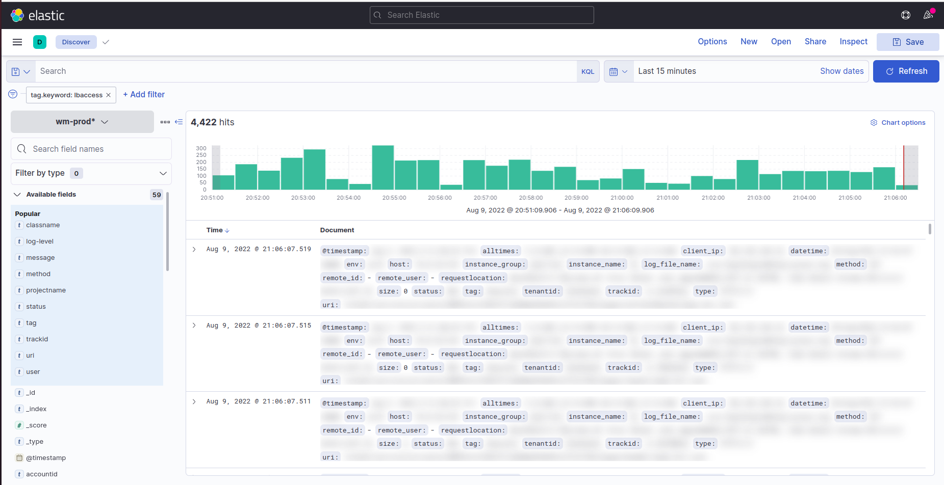 Similarly, Access logs are also pushed to Elastic Search. They can be also be filtered using the below filters.